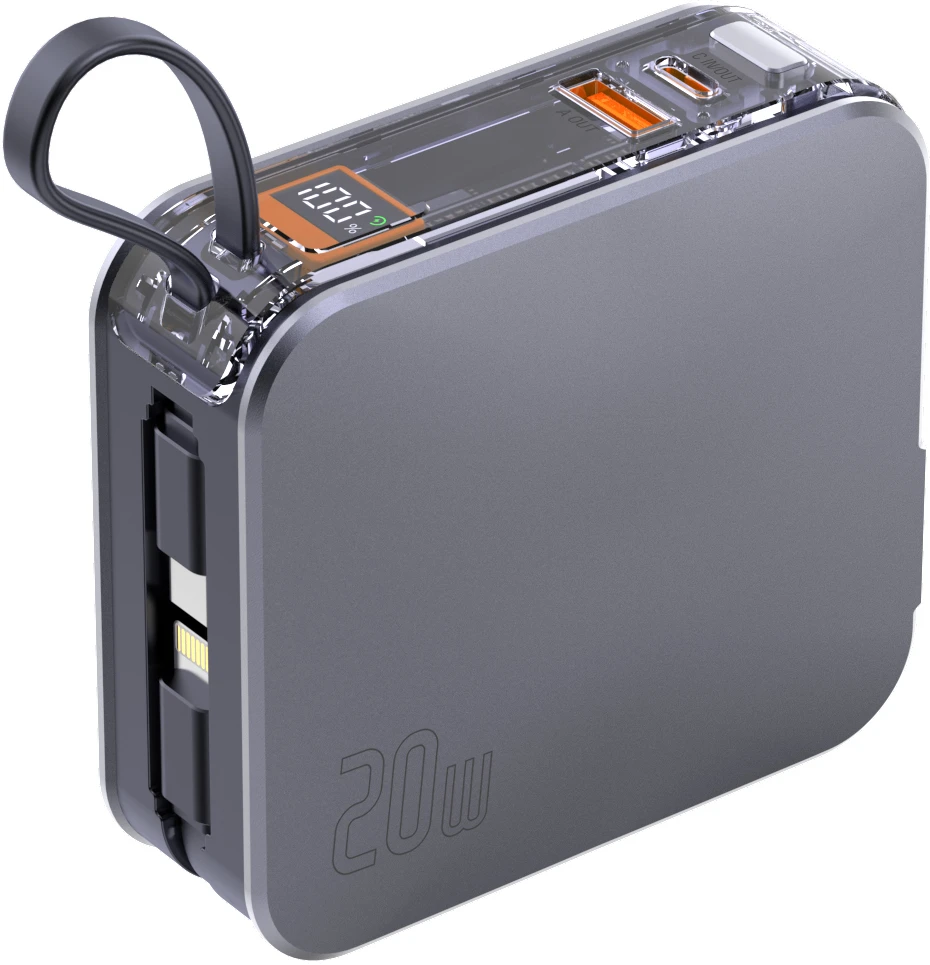 4Smarts 3in1 Hybrid Charger Lucid Powerbank mit integriertern Kabeln Silber