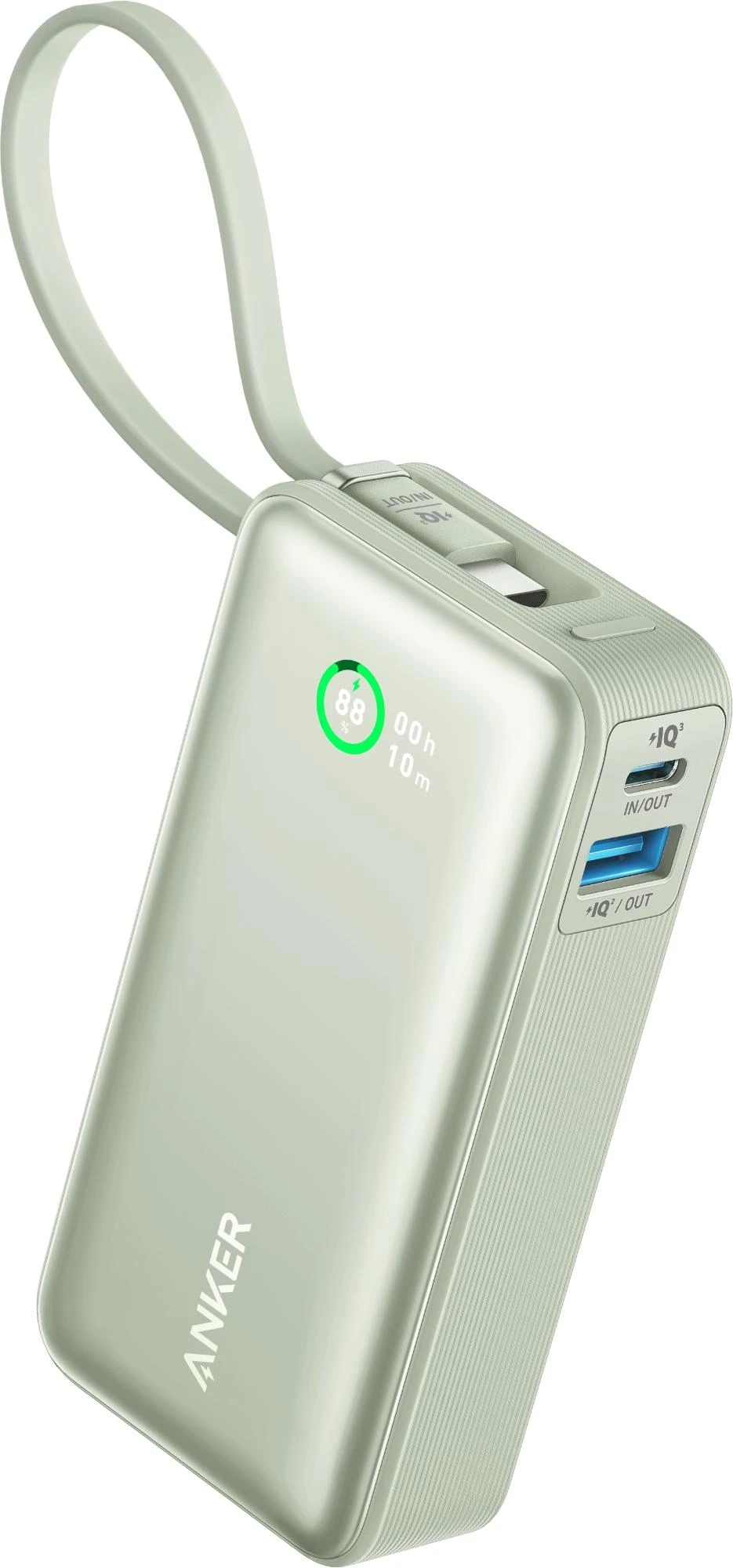 Klein und handlich, mit nur 104 × 52,3 × 26mm. Das eingebaute C- Kabel kann als Trageschlaufe verwendet werden, um die Powerbank